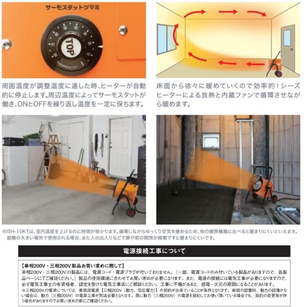 ナカトミ 電気ファンヒーター(循環型温風送風機)ISH-10KT 三相200V 50/60Hz ※接続工事必要
