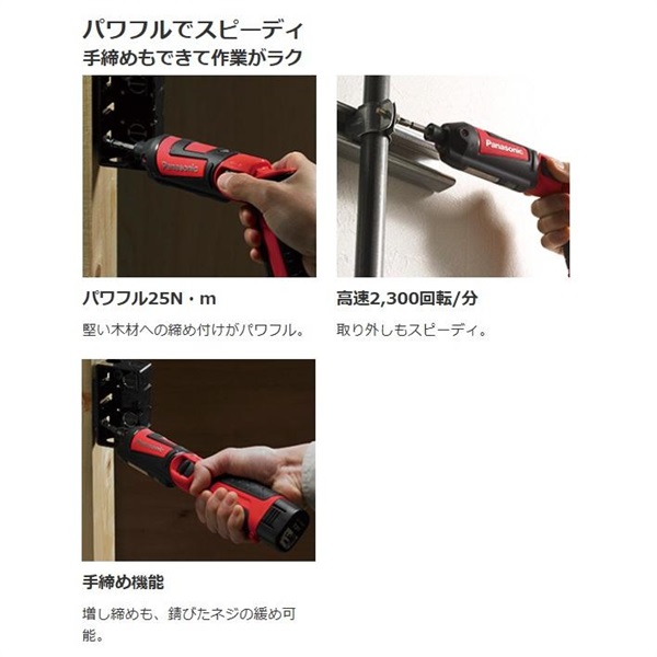 Panasonic 充電スティックインパクトドライバー 7.2V レッド EZ7521F07D-R 7.2V 1.5Ah 電池2個セット 1台 パナソニック(株)